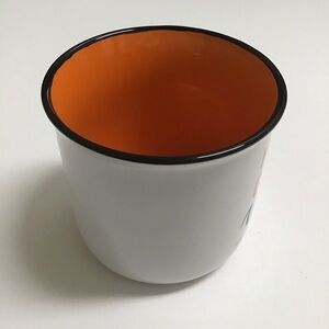 Get ready for Halloween with this fun ceramic coffee mug/tea cup! Lined in orange with a black accent rim.