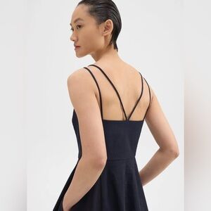 Theory Square Neck Good Linen Midi Dress Strappy Square Neck Navy Blue Size 2