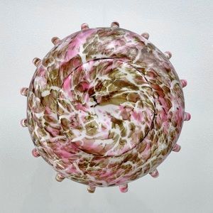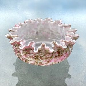 Ruffle Edge Pink and Brown Glass Centerpiece Bowl