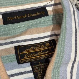 Vintage Eddie Bauer Shirt Men's Large Striped Cotton Northwest Chambray 90s