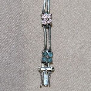 This elegant silver bracelet adds a touch of sophistication to any outfit. Perfect for any occasion.