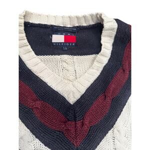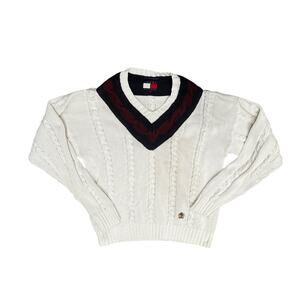 Vintage 90s Tommy Hilfiger Varsity Academia Cable Knit Sweater 100% Cotton Large