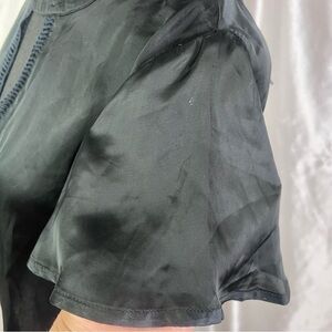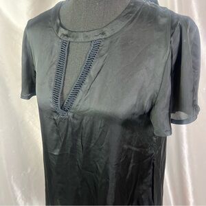 Stone Row Black Satin Cutout V-Neck Short Sleeve Blouse – Sleek & Chic (Size S)