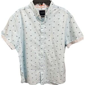 Fresh Produce women's boxy pullover Size Medium Hawaiian Print Split Neck Blue