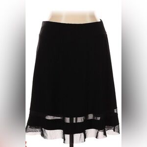 Black Midi Slip Skirt: A-Line w/Sheer Gauzy Trim. TRIBAL Brand. NWOT Never Worn