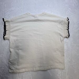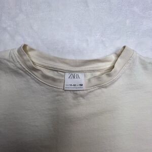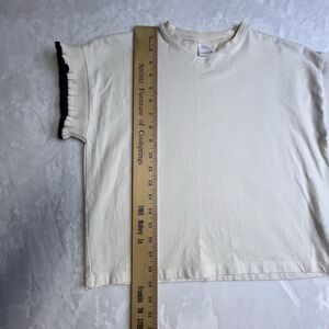 Zara Shirt 11-12 Medium Ivory Crew Neck Short Sleeve Ruffles Opening Stretch