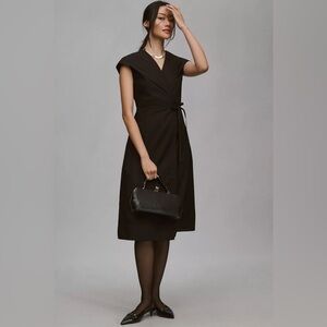 Anthropologie Maeve Hooded Poplin Tie Styling Cotton Midi Shirt Dress Size XL