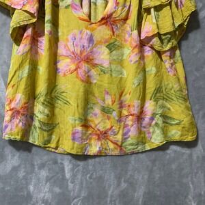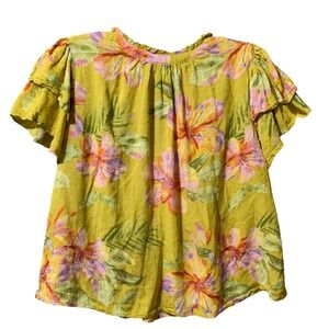 Rachel Roy Yellow Floral Ruffle Sleeve V Neck Top Women's XL Rayon