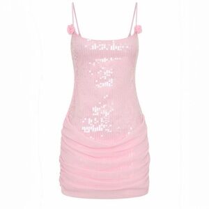NWT White Fox Studio Starlet Sequin Mini Dress in Baby Pink Size XS. Shine in this elegant pink sequin dress, perfect for any special occasion. The delicate straps and fitted silhouette offer a flattering look. New with tag Excellent Condition, see photos for details and approximate measurements!