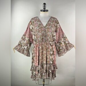 Flared Stretchy Distressed Cut out Pants with elastic band in Mauve Purple color. Cut outs are lined underneath so skin does not show.