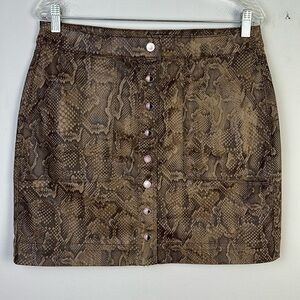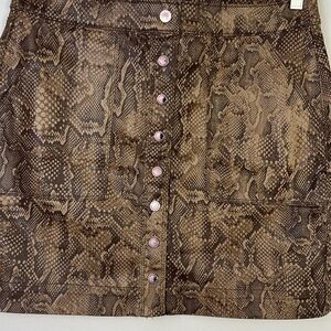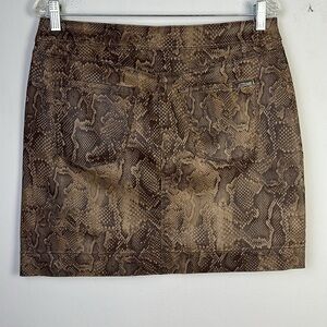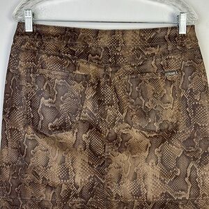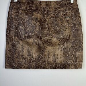 NWOT White House Black Market Print Coated Boot Skirt Brown Snake in Viper Ravine Size 10P Cotton Stretch Blend Office Date Night Animal