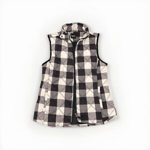 Kensie Women's Black & White Checkered Quilted Zip Vest Layering Small Jacket