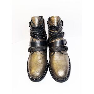 Freebird Leather Ankle Boots Western Boho Straps Buckle Studded Moto Rock 38/7.5