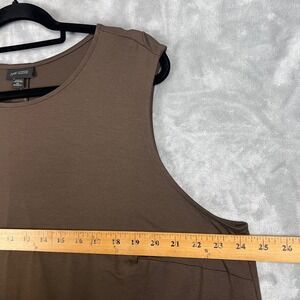 J. Jill Wearever Collection sleeveless midi dress in Dark Truffle brown offers a sophisticated and effortless look. Crafted from a soft, wrinkle-resistant rayon-blend jersey with Lycra spandex for stretch, this A-line silhouette features a classic crew neckline and a clean, minimalist design. Perfect for travel or everyday wear, it provides a comfortable fit that moves with you while maintaining a polished appearance.