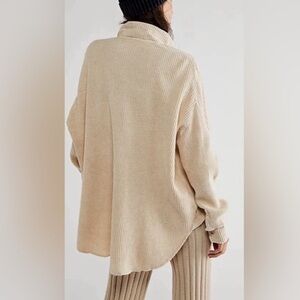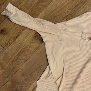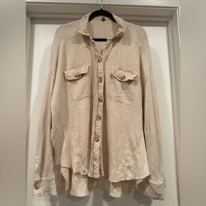 Free People One Scout Jacket Shacket Waffle Thermal Knit Slouchy Nude Sand
