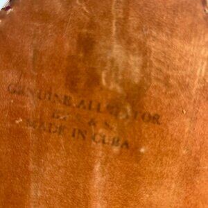 Vintage genuine alligator leather shoulder bag featuring a striking three dimensional alligator head on the front flap. Beautiful brown leather with natural scale pattern and detailed whip stitching trim. Adjustable shoulder strap with snap adjustments.
