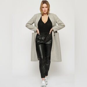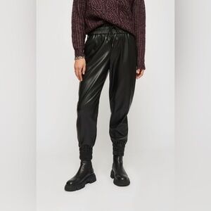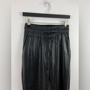 SIze M ( 13" rise, 26" inseam) DYNAMITE faux leather joggers. Black. Elasticated waistband and cuffs. Drawstrings on waistband. 100% PU, 100% polyester backing. EUC (B-4)