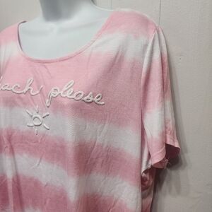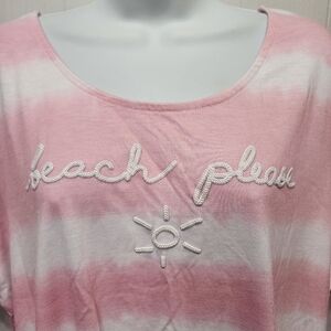 Lane Bryant Top 18 / 20 Beach Please Pink White Short Sleeve Striped Plus B773