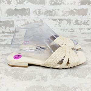 NEW Calvin Klein Toukie Sandals Womens Cream Woven Slide Chic Summer A716
