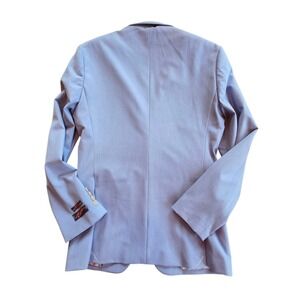 The Egara Skinny Fit Suit Separates Jacket in sky blue with a paisley liner is a stylish and sophisticated choice for men. This suit jacket, designed for regular size men, features a skinny leg style for a modern look. The blue color adds a pop of freshness, while the intricate paisley pattern adds a touch of elegance. Perfect for formal occasions or adding a sleek touch to a professional outfit, this jacket from Egara is sure to make a statement.