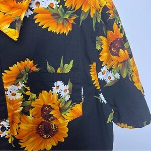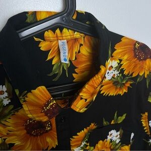 Sunflower Print Men's Large Collared Button Down Shirt Big Bold Loud Fun Black