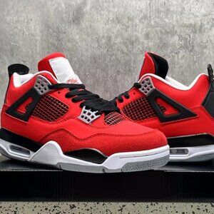 Kids Retro 4 design sneakers in bold red color. Built with a comfortable cushioned sole, breathable upper, and durable traction outsole for everyday wear. Perfect for lifestyle outfits, sports activities, and casual street style. Modern look with supportive and lightweight fit.