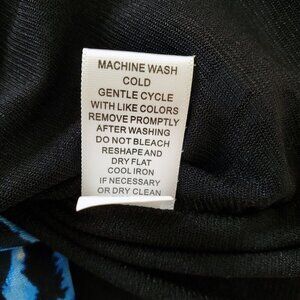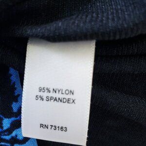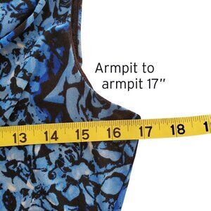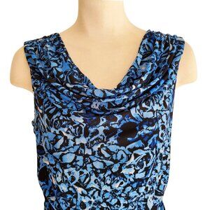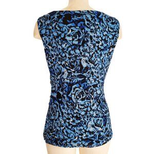 Cable & Gauge Floral Blue & Black Mesh Lined Drape Neck Ruched Waist Sleeveless Blouse M