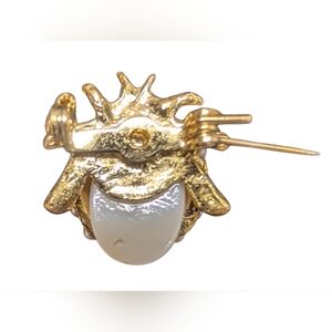 Small vintage ladybug brooch featuring a gold finish with pearl accents. Perfect for adding a touch of whimsy to any outfit.