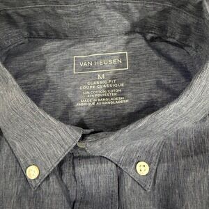 Van Heusen Mens M Classic Fit Button Down Shirt Blue Long Sleeve Business Casual
