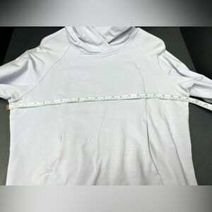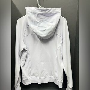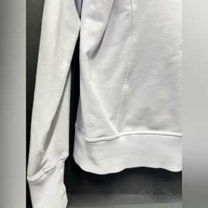 Lululemon hoodie size 6 color is pale blue, this hoodie is pre loved and it shows signs of wear , see details in the pictures, it has a couple micro spots with tiny discoloration and one with a tiny stain, very difficult to notice them, but in general good condition. Super soft, and totally worth it.