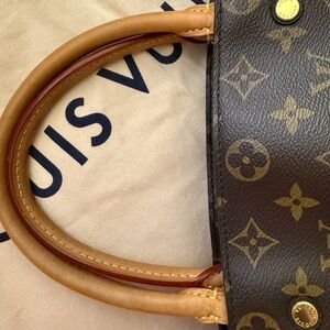 Louis Vuitton Montaigne GM tote. Stylish tote with iconic monogram pattern. Features tan handles and gold accents. Includes original dust bag. Missing long purse strap. Very good condition. Includes Certificate of Authenticity.