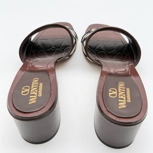Valentino VLogo Signature Open Toe Mules Sandals Heels Brown & Cream EU 39 US 9