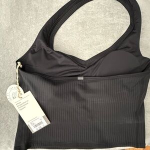 Crafted in our supple stretch knit, our women's Inversion Rib Tank is a flattering halter-style fitness top that fits right in at the yoga studio or on a power walk with friends.