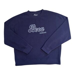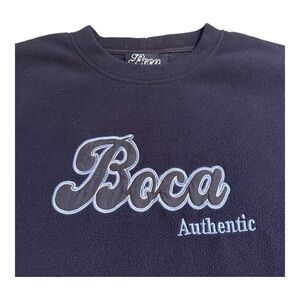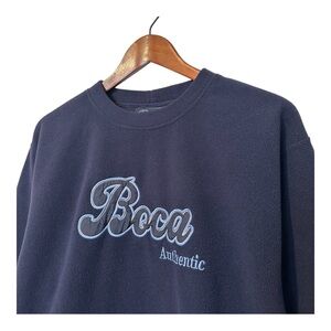 Vintage Boca Authentic Fleece Crewneck Pullover Sweater Embroidered Logo Navy