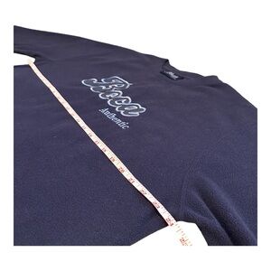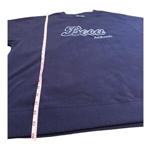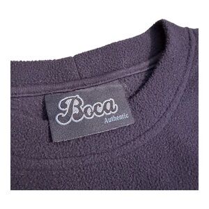 Cozy navy fleece pullover sweater with embroidered Boca Authentic logo. Tagged size 16 (14-16), please see measurements provided in photos. Mild general wear, no flaws.