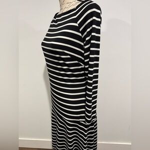 Lauren Ralph Lauren Women's Black White Striped Pleated Drop-Waist Dress Size 6