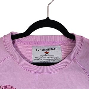 Sunshine Park Pink Lip Print Sweatshirt XS Rhinestone Lips Crewneck Pullover Cute pastel pink Sunshine Park sweatshirt featuring rhinestone lip graphics throughout. Soft cotton-blend fabric with a relaxed casual fit and unique side zipper detail that allows the hem to open for styling. A playful statement sweatshirt that pairs well with jeans, leggings, or skirts. Comfortable everyday piece with a fun feminine aesthetic. FEATURES Crewneck sweatshirt Rhinestone lip print graphics Side zipper detail at hem Long sleeves with ribbed cuffs Soft cotton blend fabric Relaxed casual fit Material: 84.5% Cotton, 15.5% Spandex MEASUREMENTS (inches) Pit to pit: 22.5" Length: 22" Good pre-owned condition. y2k barbiecore girlycore kawaii playfulcore dopamine dressing streetwear casualcore
