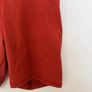 Sleek and versatile bike shorts. Ideal for active or casual days. The bike shorts are in great condition! Worn a few times! The length of the shorts are 17.5 inches but they can also be high waisted and great for tummy control! The color of the shorts are like a rust orange fall color!