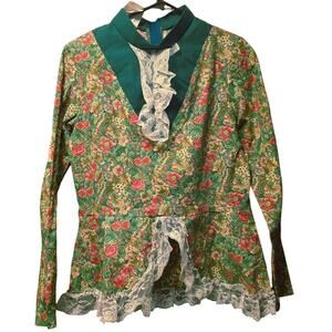 Step into a world of timeless elegance with this charming Tabis Characters Victorian Style Top! This exquisite blouse, in a women's size XL, offers a delightful blend of vintage charm and contemporary comfort.