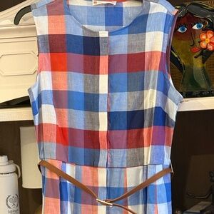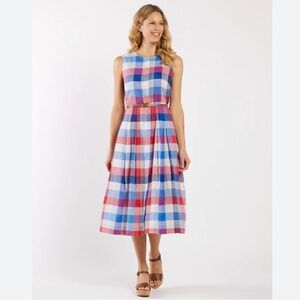 Jude Connally Large L Pauline stretch linen dress nwt plaid