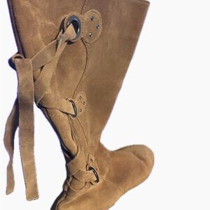 Trendy brown suede boots. A chic addition to any wardrobe.