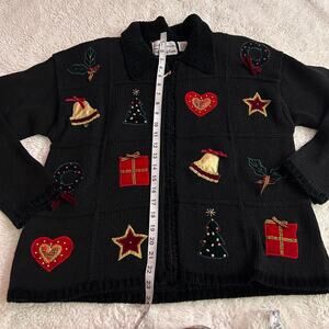 Vtg Croft Barrow Hand Knitted Sz M Christmas Holiday Embroidered Sweater Cotton