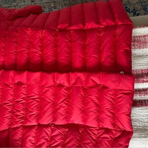 Elevate your style with this chic red puffer coat. Perfect for a bold, modern look. One half of the bottom snap is missing, as shown in pic. Doesn’t affect the wear since it’s very close to the bottom edge.
