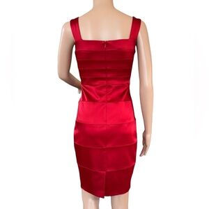 VTG Cache Red Satin Bodycon Dress | Sleeveless Square Neck Size 6