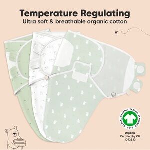 Designed with style, function and comfort in mind, our KeaBabies Soothe Swaddle Wrap uses a 2-way stretch fabric knit (non-horizontal stretch) together with ultra strength non-scratch hook and loop fasteners to ensure that your baby is held snugly inside the swaddle wrap at all times. Securing your baby from shoulders to torso allows natural movement of the hips, which is safe and ergonomic for their physical development.