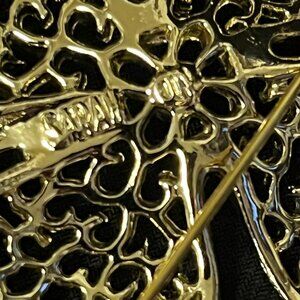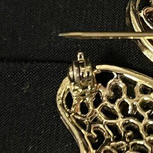 This brooch remains in excellent vintage condition, with crisp filigree detail and a secure pin‑back mechanism.