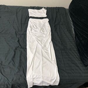 Stylish white set with a trendy top and matching skirt. Perfect for a chic look.