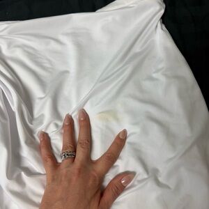 Stain on front of skirt that may be able to be cleaned or cropped/altered to hide.