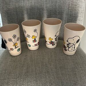 4 Snoopy and Woodstock Easter Spring melamine drinking cups daisies eggs 14oz