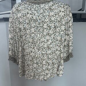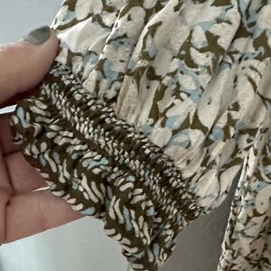 Democracy Cream, Olive & Blue Floral Button Down Shirt size L